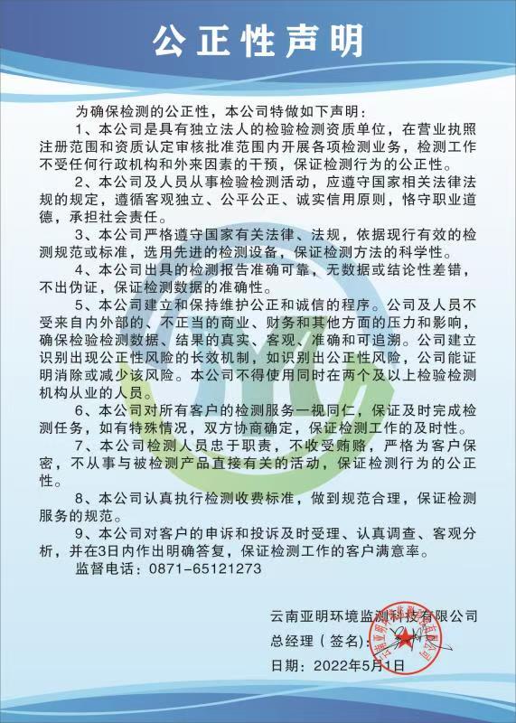 本公司將按照國家相關(guān)法律的規(guī)定,建立和持續(xù)改進管理體系,不斷提高檢測能力和管理水平,努力向各級環(huán)境主管部門及社會提供科學、公正、準確、可靠的檢測服務。
